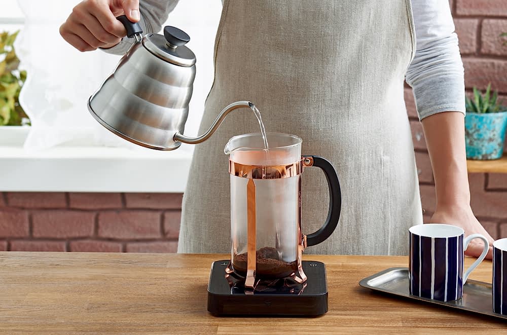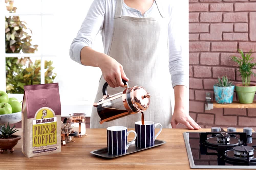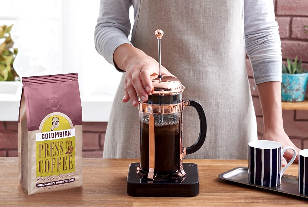 - 5)4 dakikalık demlenme sonrası, filtreyi aşağı bastırın. Bastırdıktan sonra kahveyi hemen servis yapın, böylece kahvenin acılaşmasını önlemiş olursunuz.